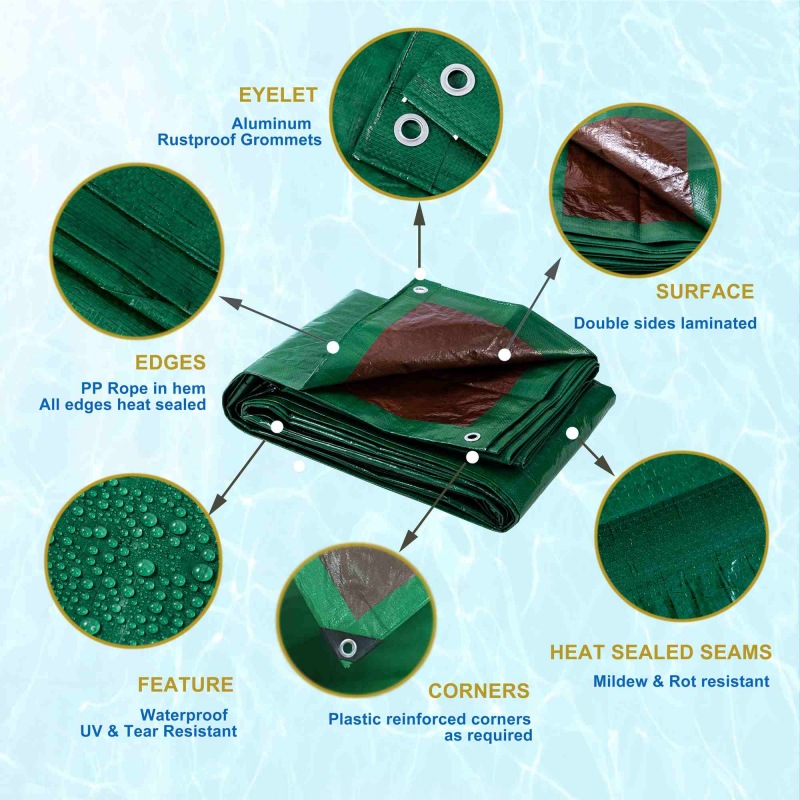 Lona de PE verde marrón de 8'x10' 110GSM para protección de cubierta